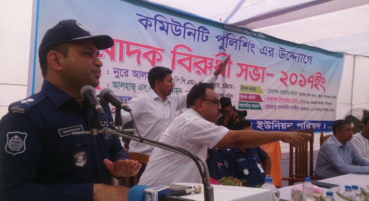 গতকাল বুধবার সীতাকুণ্ড উপজেলার ছলিমপুর ইউনিয়ন কার্যালয়ে এক মাদক বিরোধী সমাবেশ অনুষ্ঠিত হয়। এতে ডাকওয়ালা বাড়ির এলাকার মাদক বিক্রেতা সাইদুল ও জালালের নেতৃত্বে নয় যুবক ও এক যুবতী চট্টগ্রাম জেলা পুলিশ সুপারের হাতে ফুলের তোড়া দিয়ে মাদকমুক্ত সমাজ গড়ে তোলার প্রত্যয় ব্যক্ত করেন। এসপি নুরে আলম মিনা যুবকদের স্বাগত জানিয়ে পুরস্কৃত করেন। তিনি অনুষ্ঠানে প্রধান অতিথির বক্তব্যে মাদকের নেশা থেকে ফিরে আসা যুবকদের সব ধরনের সহযোগিতার আশ্বাস দেন।