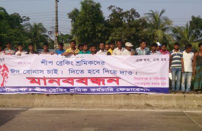 সীতাকুণ্ডে ঈদ বোনাসের দাবিতে জাহাজভাঙ্গা শ্রমিকদের মানববন্ধন